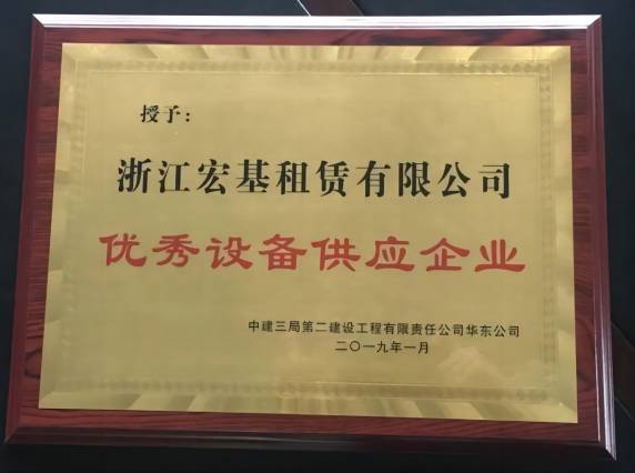 優秀設備供應企業頒發單位:中建三局第二建設工程有限責任公司華東公司