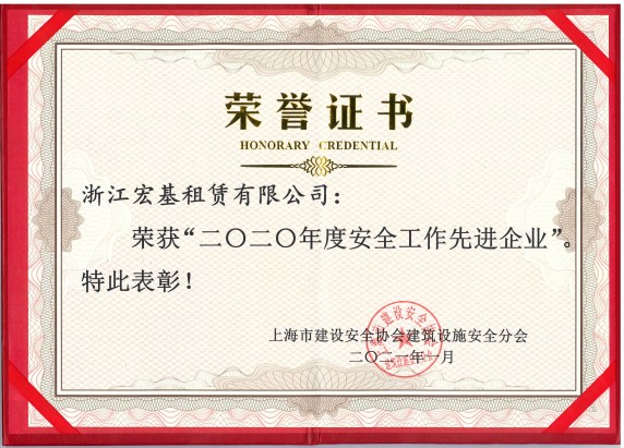 2020年度杭州市建筑機械行業安全生產企業頒發機關:杭州市建設工程質量安全管理協會施工機械安全分會
