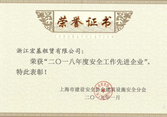 2018年度安全工作先進企業頒發機關:上海市建設安全協會建筑設施安全分會