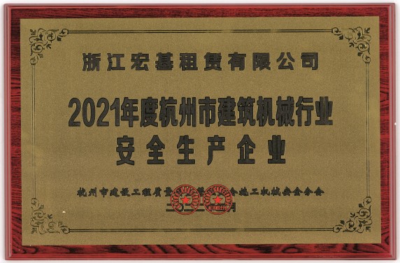 2021年度杭州市建筑機械行業安全生產企業頒發機關:杭州市建設工程安全管理協會施工機械安全分會