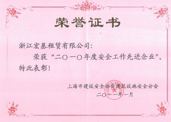 2010年度上海市建設(shè)施工安全生產(chǎn)先進企業(yè)