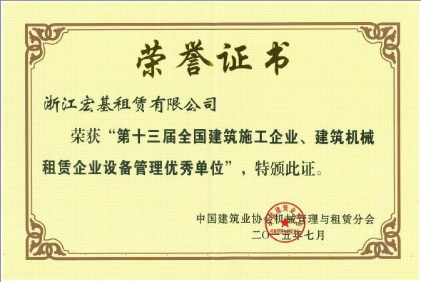 第十三屆全國建筑施工企業(yè)、建筑機械租賃企業(yè)設(shè)備管理優(yōu)秀單位