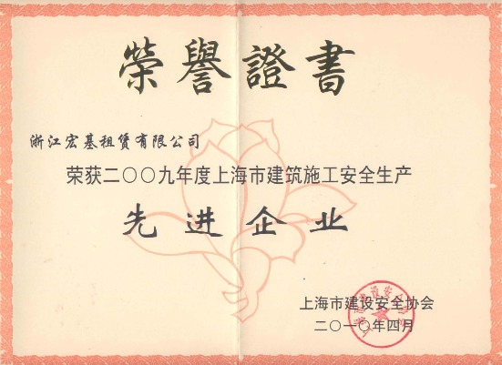 2009年度上海市建筑施工安全生產(chǎn)先進企業(yè)