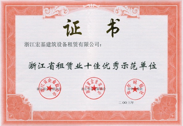 浙江省租賃業(yè)十佳優(yōu)秀示范單位