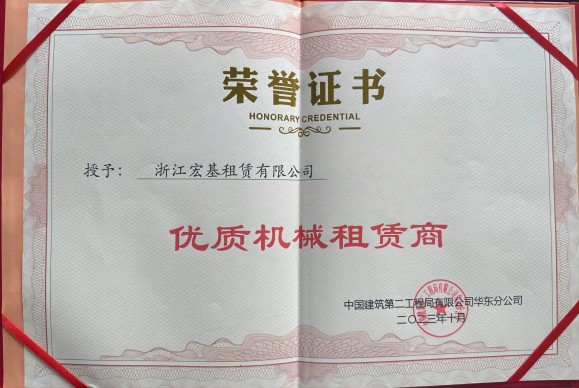 中建二局華東分公司“優質機械租賃商”頒發單位:中國建筑第二工程局有限公司華東分公司
