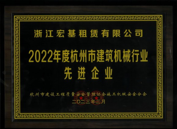 2022年度杭州市建筑機械行業先進企業頒發機關:杭州市建設工程質量安全管理協會施工機械安全分會