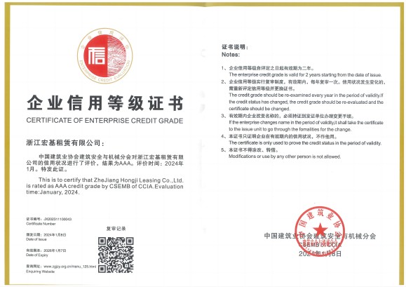 AAA級證書頒發機關:中國建筑業協會建筑安全與機械分會