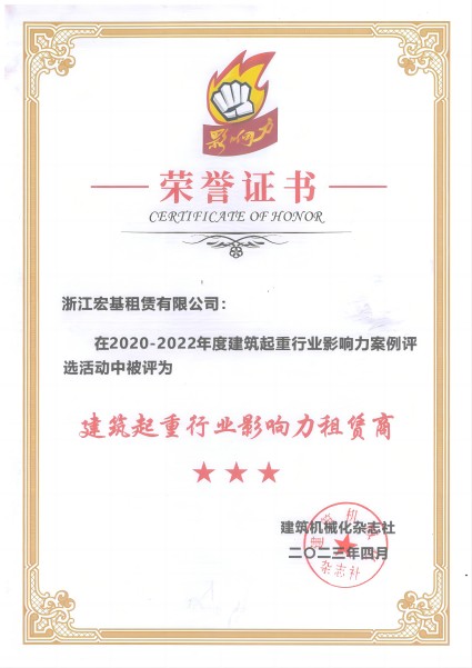 2020-2022年度建筑起重行業影響力租賃商頒發單位:建筑機械化雜志社