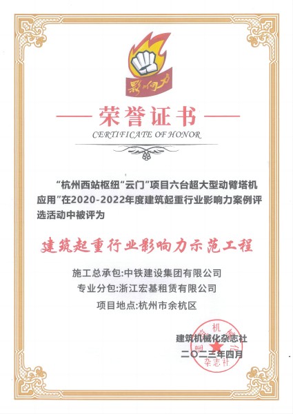 2020-2022年度建筑起重行業影響力示范工程頒發單位:建筑機械化雜志社
