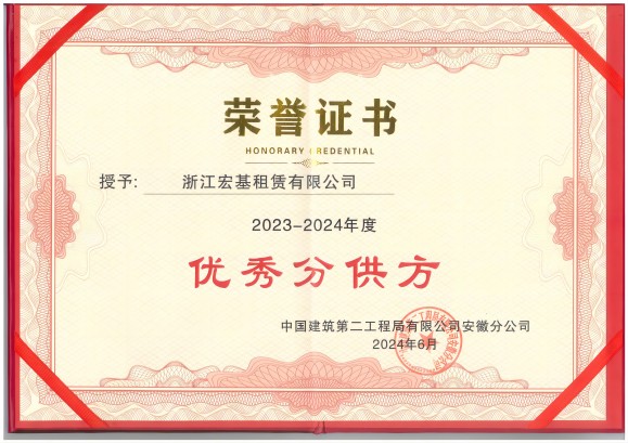 中建二局安徽分公司2023-2024年度“優秀分供方”頒發單位:中國建筑第二工程局有限公司安徽分公司