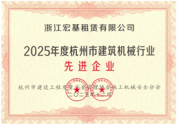 2025年度杭州市建筑機械行業先進企業頒發單位:杭州市建設工程質量安全管理協會施工機械安全分會