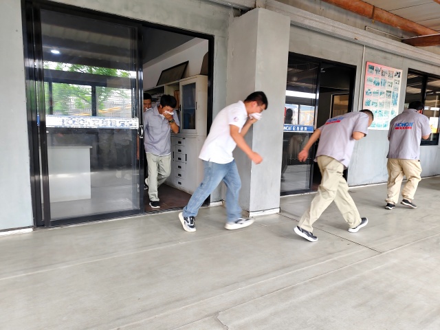 生命通道,是危急時刻的“救命通道”。在暢通生命通道演習環節,模擬了火災等緊急情況下,如何快速、有序地疏散人員,確保生命通道的暢通無阻。員工們迅速響應,按照預定的疏散路線,用濕毛巾捂住口鼻,彎腰低姿前行,在引導員的指揮下,有條不紊地撤離到安全區域。整個演習過程緊張而有序,充分展現了員工們良好的應急反應能力和團隊協作精神。